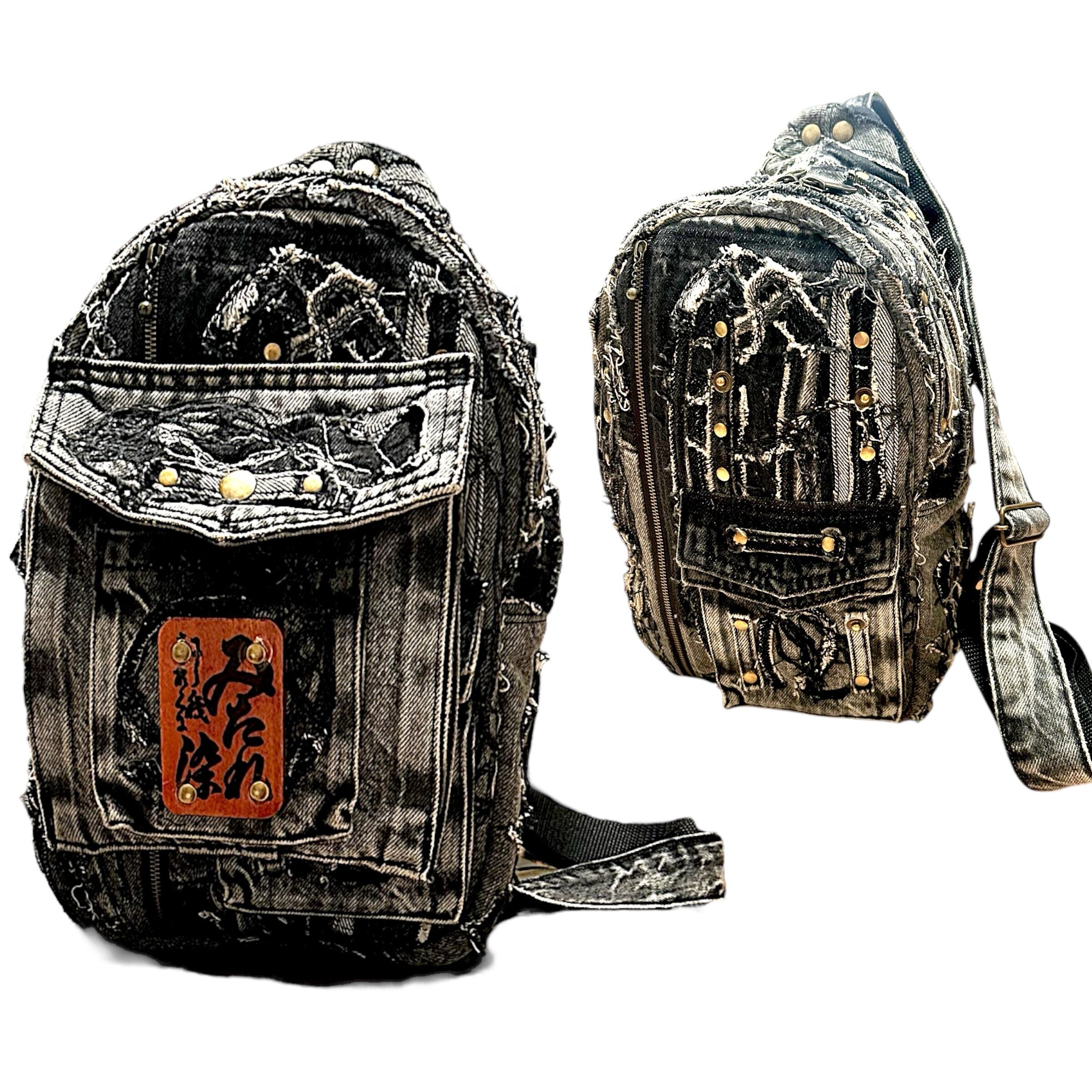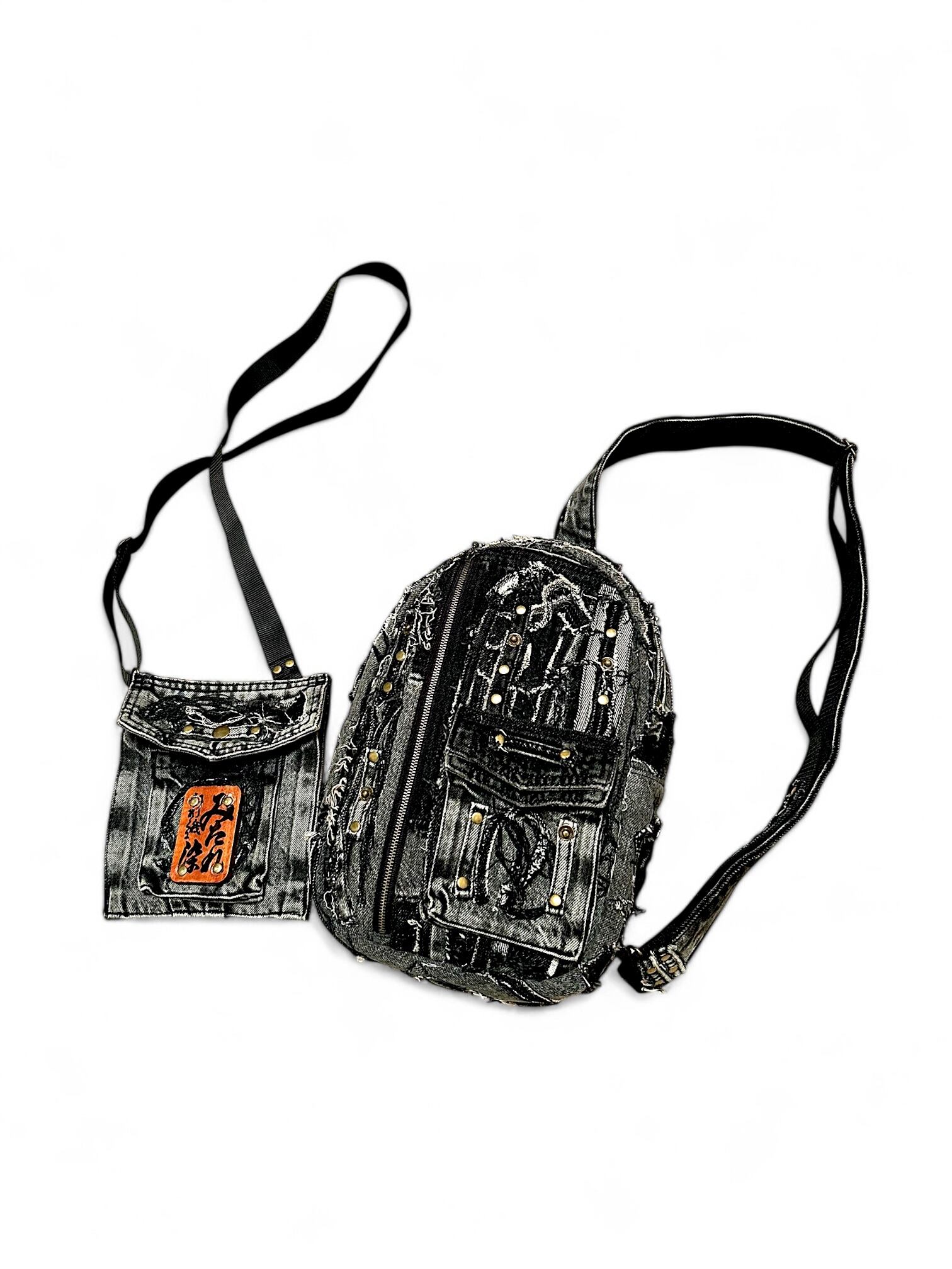 あなたのスタイルにアクセントを加える「羅陽蛇陽 らびだび。ボディバッグ」は、リメイクされたダメージ加工のデニムを使用したユニークなデザインが特徴です。このボディバッグは、実用性とファッション性を兼ね備えたアイテムとして、日常のコーディネートにぴったりです。
